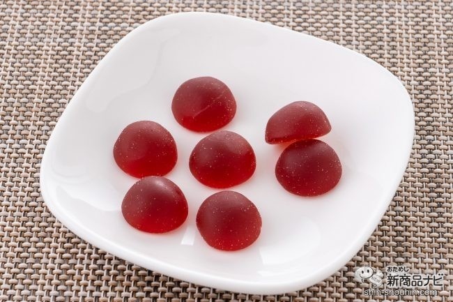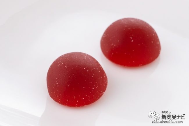 ライチ&グレープフルーツ味は本商品に合わせて作られた新フレーバーグミは1粒直径2cmの半球型。ライチ&グレープフルーツの華やかな香りが強めだ。