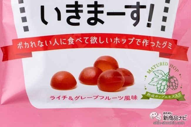 成分には、健康素材「熟成ホップエキス」を配合。ホップは、ビールづくりに不可欠な素材として知られているが、実は様々な健康効果があると言われ、ヨーロッパでは古くからハーブとして生活に取り入れられてきたそう。そんなホップを、キリンホールディングスが10年にわたり研究を続け、食品に使いやすい健康素材として開発したのが「熟成ホップエキス」。砂糖や水飴を使ったグミにすることで、甘さと苦みをバランスよく配合し食べやすくしているのだ。