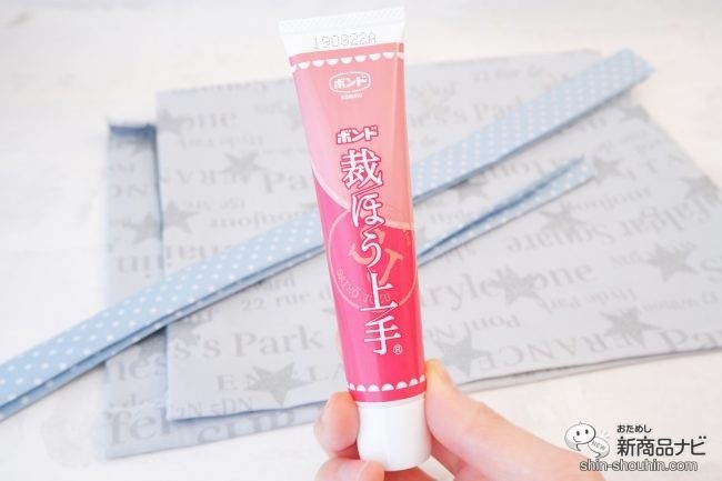 仕上がりは針と糸を使った時とは違うが、貼り合わせただけなのにしっかりとした接着で、多少のことでは破れたりはしない。「お裁縫が苦手…」「ミシンなどの道具がない」、そんな人にとっては『ボンド 裁ほう上手』はとても便利なアイテム。お気に入りの布でオリジナルの上履き入れが作れるから、子どもたちも喜んでくれるはず。名札やワッペンをつけたい時には『ボンド 裁ほう上手(R) スティックタイプ』があるので、そちらを使ってみて。