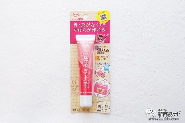 コニシ株式会社(大阪府)から発売している布用の強力接着剤『ボンド 裁ほう上手』(チューブタイプ45g・ヘラ付き・参考小売価格 税込858円・発売中)。