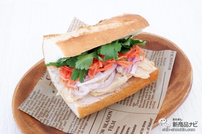 ※今回調理したバインミーは、ヴィーガンではありません彩り鮮やかで、鶏肉が入っているかのようなボリューム感。レバーペーストがアクセントになっており、なますの酸味、パクチーの強い香り、バケットの香ばしいおいしさが絶妙に混ざり合う。