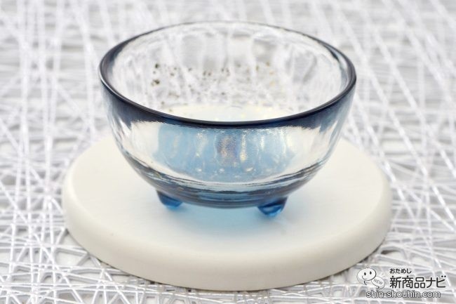 日本酒を注ぐと、青色が一層鮮やかに見え、海の壮大さを感じさせる。