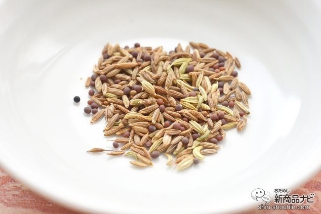 ビーズみたいで美しい付属のホールスパイスには、クミン・マスタード・フェンネル。なかなか自分では購入しないので珍しく見惚れる記者。
