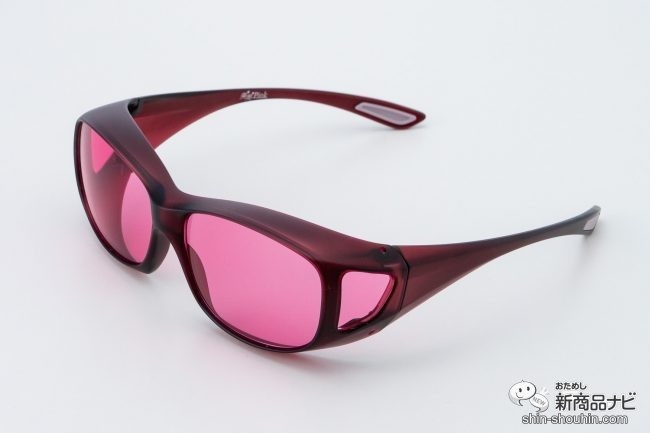 レンズには、特定の波長を選択的に取り入れられる独自のレンズ構造を採用。正面からの紫外線をほぼ100%カットでき、45%濃度のピンクカラーで眩しさもガードしてくれるため、通常のサングラスとして使ってもOK! 形は顔に沿った形状で、フィッティングフリー仕様となっている。