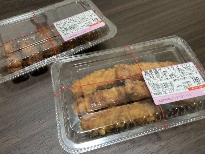 今回見つけてきたのは、「鶏唐揚げ(スティック)」と「スパイシーチキンナゲット(スティック)」の2つ。