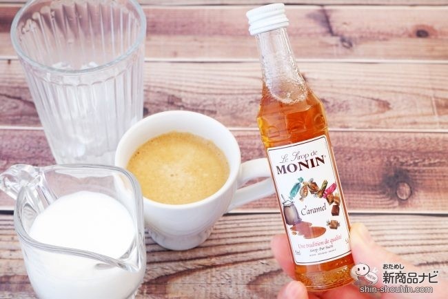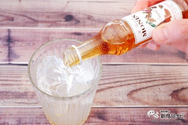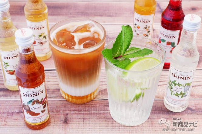 飲み物に対して、モナンシロップ1:8で作るのが目安。もちろんお好みで甘さを調節していこう。