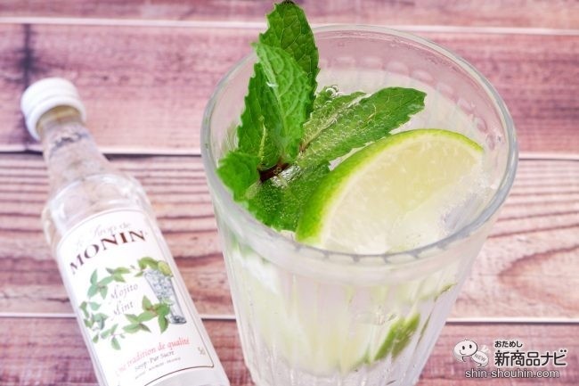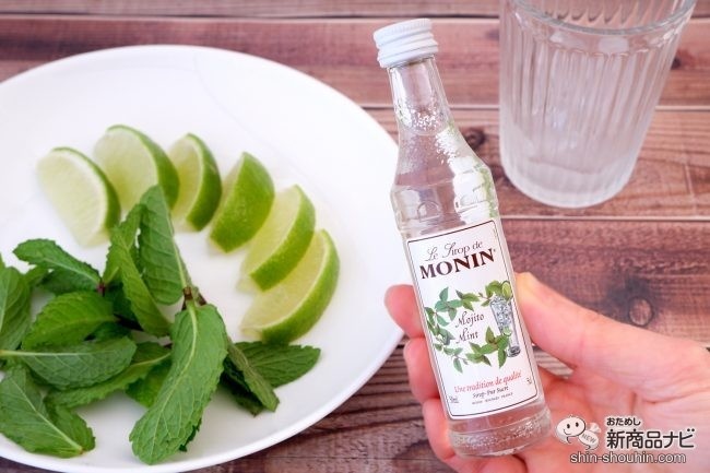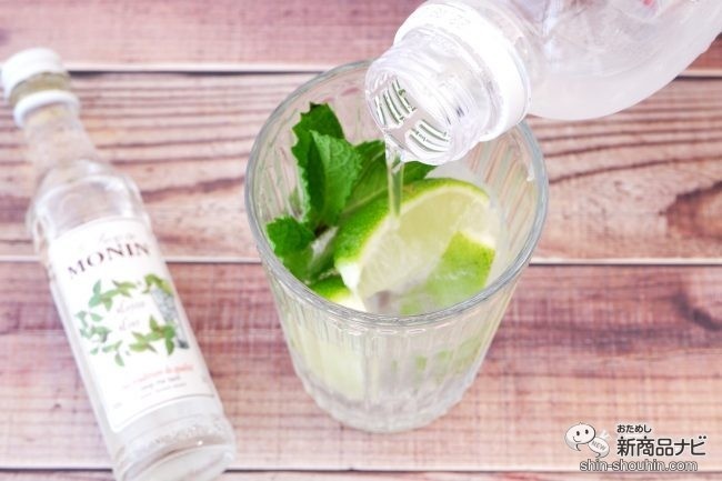 今回は『モヒートミント・シロップ』で爽やかさ抜群のヴァージンモヒートを作ってみよう。こちらもシロップは1:8を目安に薄めるのがおいしく作るポイント。