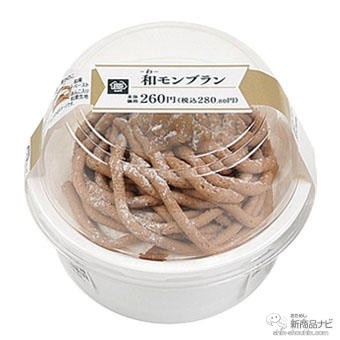 クランブル、ベイクド和栗生地に、和栗ペーストとホイップクリームを合わせ、モンブランクリームを絞り、甘栗かのこと粉糖で飾ったカップ入りモンブランケーキ。