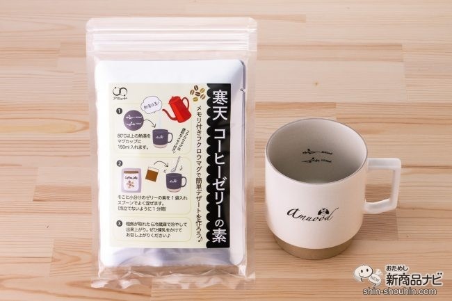 そろそろひんやりデザートが食べたくなる季節、できればカロリーも控えめなモノを選びたいもの。アミュードの『寒天コーヒーゼリーの素』は、お湯と粉末を混ぜるだけ! あっという間にヘルシーデザートが作れちゃう。また、メモリ付きマグカップ「幸せのフクロウマグ」なら計量カップも不要に。このセット、いったいどれだけ手軽なのか、さっそくゼリーを作ってためしてみた。