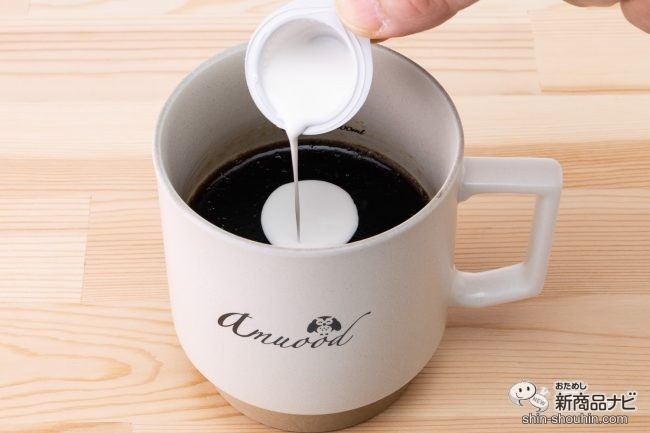 2層の色合いが美しいゼリーにコーヒーフレッシュをかけてみると、これはおいしそう。