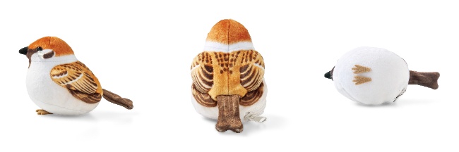 本商品は、“ほんのわずか”という意味のことわざ「すずめの涙」をモチーフにした、スズメのポーチなんです。360度どこから見ても本物のスズメに似せてつくられており、裏側の足まで再現されています。