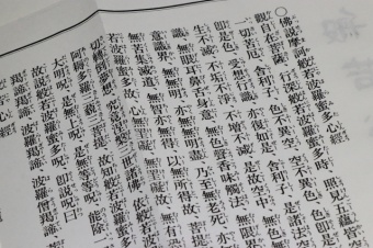 般若心経(摩訶般若波羅蜜多心経)は600巻に渡る大乗仏教経典「大般若波羅蜜多経」を262文字に凝縮したとされる経典である。短くリズムも良いので浄土真宗など一部の宗派を除いた各宗派で読誦されている。日本人にお経の名を挙げろと言われればまず般若心経の名が出ると言ってよい。心経の文字が刻まれたグッズなども多く販売している。「色即是空」「空即是色」の文言は意味はわからなくても聞いたことがない日本人は少ないのではないか。