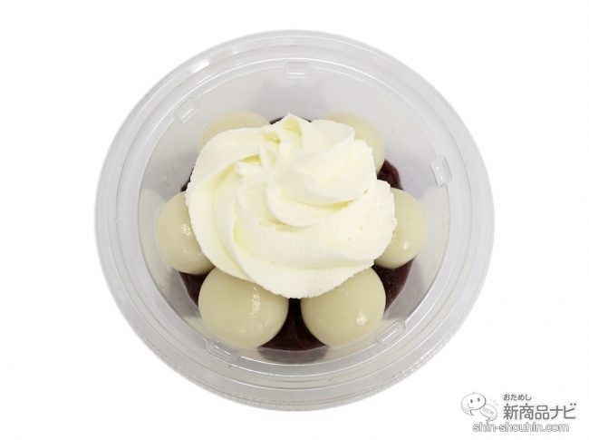 ぜんざい餡の上に、白玉とホイップクリームをのせた一品。