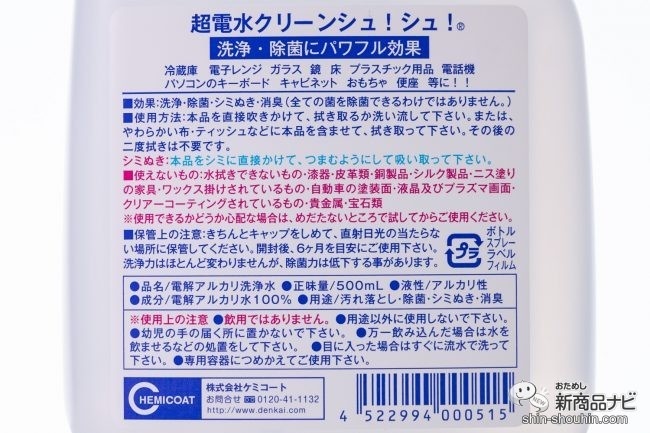 ケミコート(千葉県)の「超電水クリーンシュ!シュ!」は、販売実績25年以上を誇るロングセラーの除菌洗浄シリーズ。赤ちゃんやペットがいる家庭など、安心の除菌商品を求める人たちから高く支持されている。