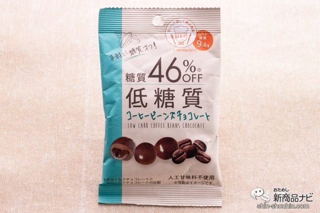 「糖質46%OFF」という文言が目立つパッケージだが…そんな「低糖質コーヒービーンズチョコレート」が、我々の健康だけでなく、「地球の健康」にも配慮し、サスティナブルな紙包材にリニューアルした。写真でも一目瞭然。すぐに紙の質感が特徴だと認識できるはずだ。