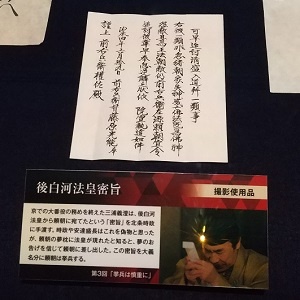 なので、大河ドラマ館に展示されている「後白河法皇密旨」は製作スタッフによるオリジナル(創作)となります。