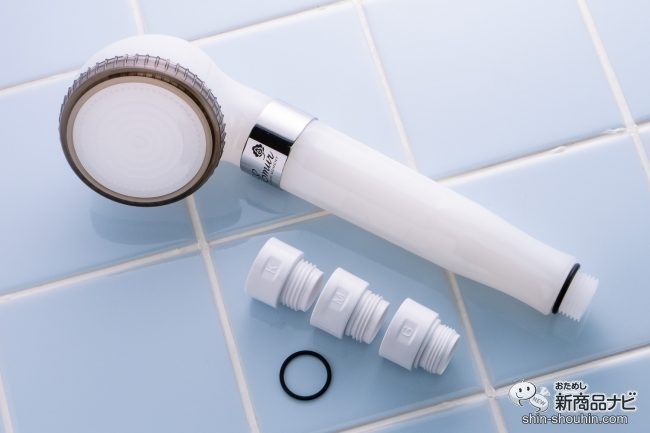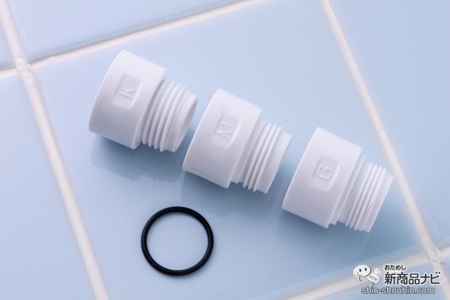 3種類のアダプターが付属しており、シャワーホースにも簡単に取り付けられる。メーカーによってはアダプターなしで直接取り付けOKだ。工具なしで手軽に取り付けや交換ができるのも嬉しい。