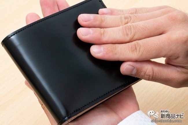 片手サイズでポケットにすっぽりと入るスマートな財布の魅力に加えて、上質なコードバンによる高級感はビジネスシーンとカジュアルシーンどちらにもマッチ。久しく二つ折り財布を使っていなかった記者だが、手触りが癖になりポケットから取り出すという動作自体に楽しさすら感じるほどハマってしまった。