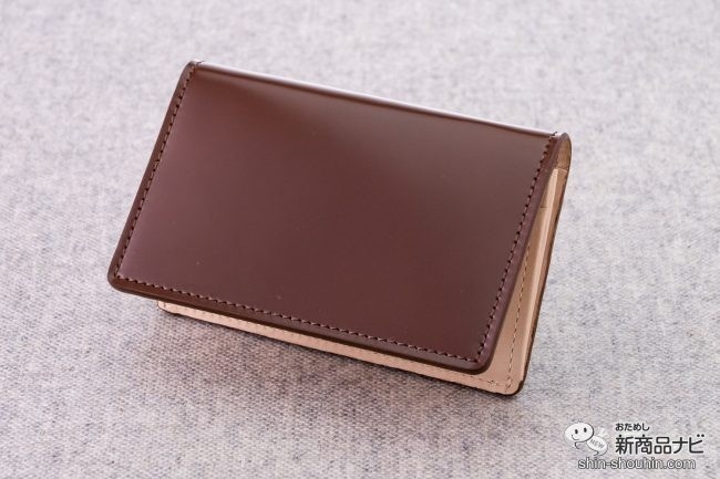 ササマチ仕様でスマートな印象の『アルプスコードバン 名刺入れ』(価格 税込12,100円・2022年6月3日発売)。中央部分が山型になっているマチ形状で、中に入れた名刺やカードが片側に寄らないようになっている。カードポケットも付いているので、もらった名刺を仕分けるのも便利なアイテムだ。