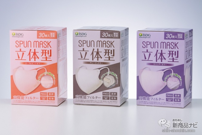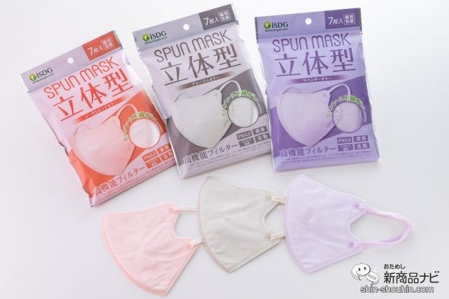 機能性とファッション性を兼ね備えた『立体型スパンレース不織布カラーマスク』にコーラルピンク、グレージュ、ラベンダーの新色が登場!