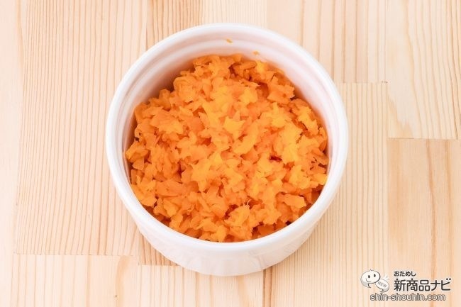 じゃがいもも同じようにきざんでみたら、少し粒を残してきざまれたじゃがいもができあがった。いろんな食感を楽しんでほしい離乳食期にぴったり。