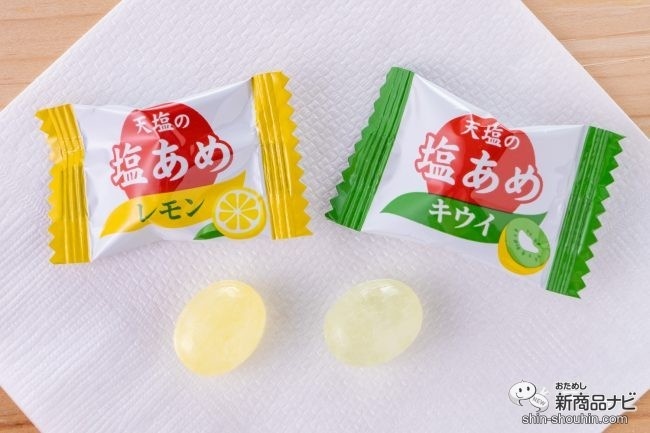 左:レモン味、右:キウイ味キウイ味も甘さは控えめだが、キウイらしい甘さと香りを強く感じる仕立て。こちらも粒感の感じられる天日塩のしょっぱさがクセになる味わいだ。レモン味よりも塩による味の変化をはっきりと感じられるので、食べていて楽しい。2つのフレーバー入りだから、飽きずに食べられるのも魅力的だ。