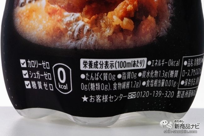 唐揚げ要素を排除したとしても、食物繊維を入れ込んだノンシュガー/カロリーゼロ/糖質ゼロのゼロコーラであり、無色透明の液色から、ダイエットにも最適な構成となっている。