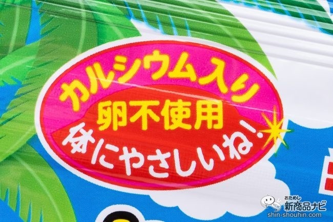 全47種類(必ず47種類の形が入っているわけではないそう)のかわいい海の生きもの型のビスケットに、ギンビス独自の含浸製法でチョコを中までしみ込ませた“しみチョコビス”。1袋当たりにカルシウムが80g入っていて、たまご不使用なのでたまごアレルギーがある子どもなどでも安心して食べられる。