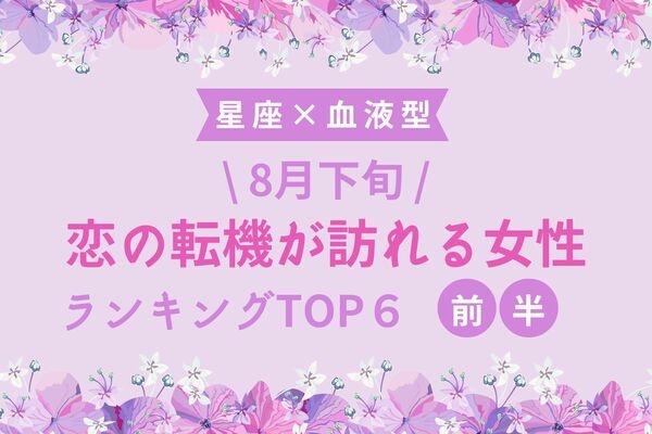 今回は「8月下旬、恋の転機が訪れる女性TOP6」を、4~6位を前半、1~3位を後半としてお送りします!