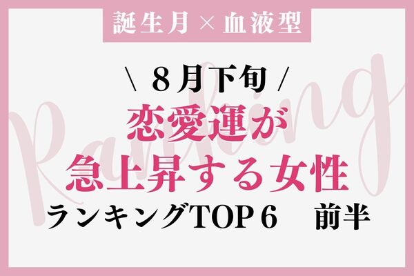 今回は、誕生月×血液型「8月下旬、恋愛運が急上昇する女性」 4~6位を前半、1~3位を後半としてお送りします。