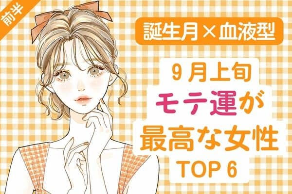 そこで今回は、誕生月と血液型を掛け合わせた「9月上旬、モテ運が最高な女性TOP6」を、前半は4位〜6位、後半は1位〜3位としてご紹介します!