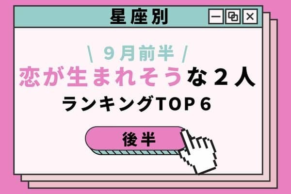 後半は、12星座別の「9月前半、恋が生まれそうな2人」1~3位をチェックしてみましょう。