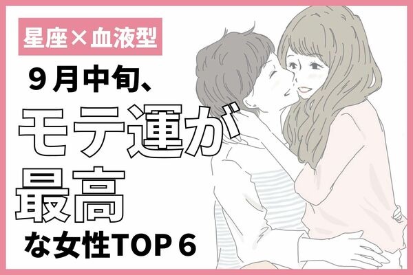 後半は星座×血液型別の「9月中旬、モテ運が最高な女性TOP6」1〜3位をチェックしてみましょう。