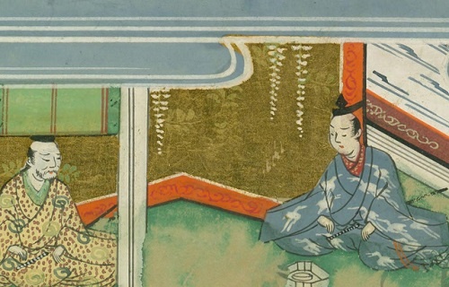 書状を差し出す義村(中央で手をつく人物)。『承久記絵巻』より