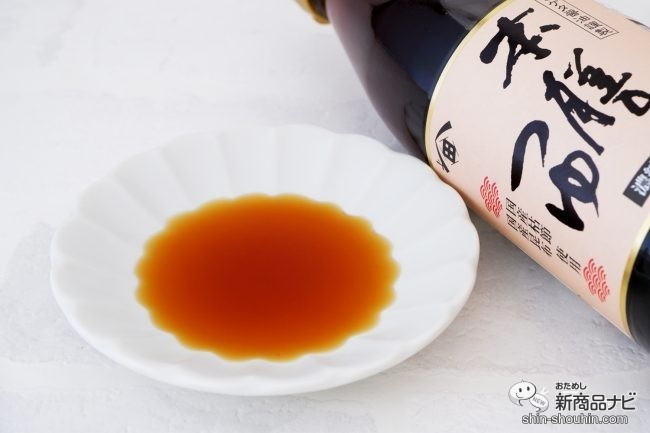 ワンタッチで開閉できるキャップは、調理中にも片手で使いやすい。小皿に注いだ瞬間に、甘めのしょうゆの香りとだしが華やかに香る。