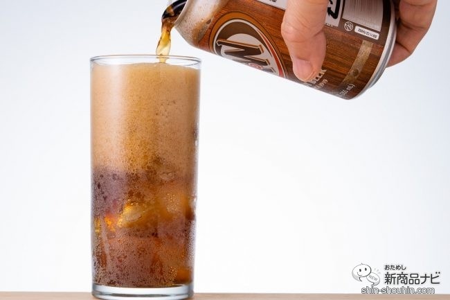 コーラのようなカラメル色素の色合いで、炭酸も弾けていて見た目的には爽やかだ。泡立ちもコーラのようにシュワシュワとしているが、ビールほど泡が立つことはない。