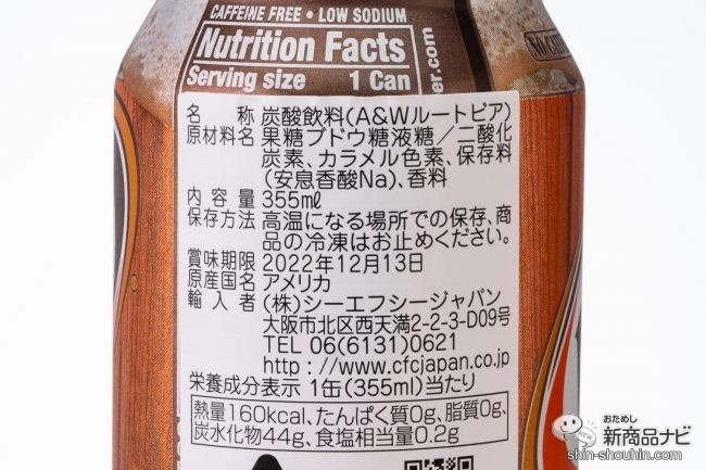 北米を中心に菓子や食品を輸入するシーエフシージャパン(大阪府)が国内で販売している『A&Wルートビア』(355ml缶・実勢価格 税込162円・発売中)は、コーラ味をベースにしたハッカ風味の炭酸飲料。日本では沖縄で20店舗以上をかまえるアメリカ発のファーストフードレストラン「A&W」の看板メニューとしておなじみだ。