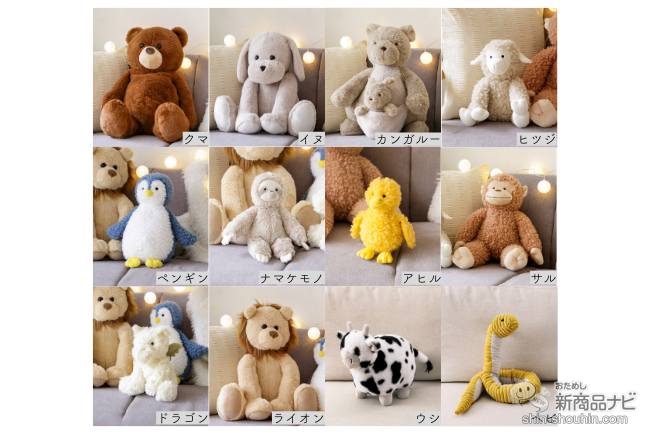 触り心地の良さと、優しいお顔に癒されるぬいぐるみシリーズが登場。抱き心地が最高な大きめサイズのものから、インテリアとしてお部屋に飾っても可愛くなりそうなぬいぐるみまで幅広いラインナップ。お子様のごっこ遊びにも使えるほか、出産祝いやお誕生日のプレゼントとしてもおすすめ◎