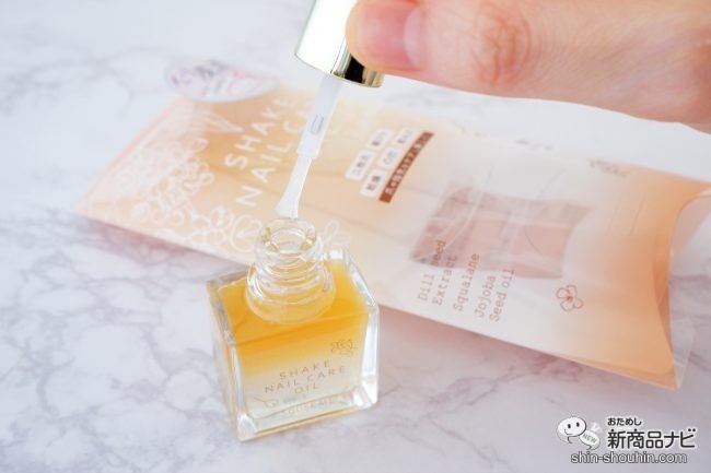 左:2層に分かれた状態 右:シェイクして混ざった状態シェイクというネーミングにあるように、2層の保湿美容液を振って混ぜて使う。べたつきの少ない軽やかなオイルが2枚爪や縦ジワなど指先のダメージを補修。