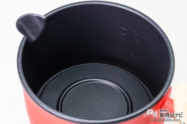 湯せんした調理鍋は、注ぎ口が付いているためお湯を捨てる動作もスムーズ。水洗いができるのでお手入れもラクラクだ。また、ポット自体コンパクトサイズなので、収納場所に困ることもないだろう。ちなみに調理方法は、「炒める」「茹でる」「煮る」のみ、高温が必要な揚げ物には使用できないのでご注意を。