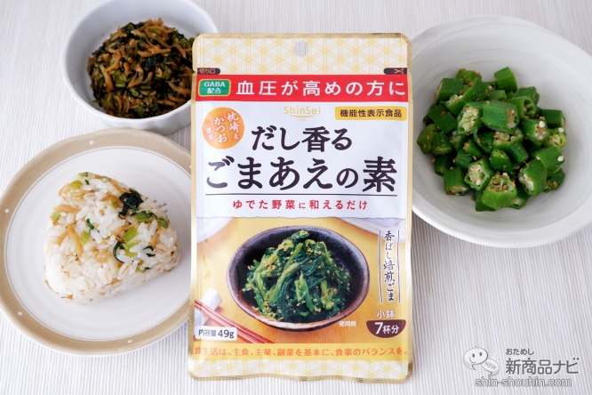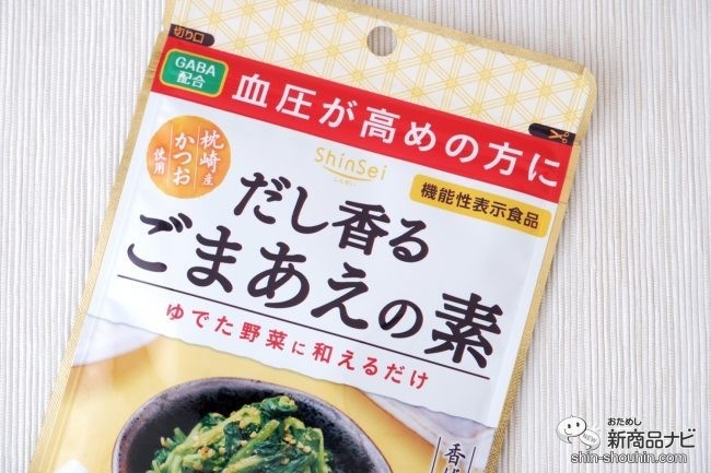 『だし香る ごまあえの素 』は、毎日の食事に加えるだけでGABAが摂取できるから血圧が気になる人も気軽に始められそうだ。