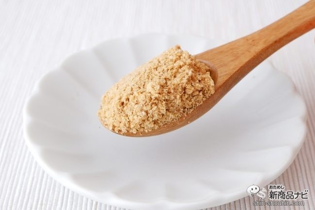 粉末状のごまあえの素。和えるものによって、手軽に使えるのがいいところ。そのまま味見してみると、芳醇なごまの香りとコクが口に広がる。醤油ベースの味付けと鰹節の旨みも効いているので、これをかけるだけで何でもおいしくしてくれそう。