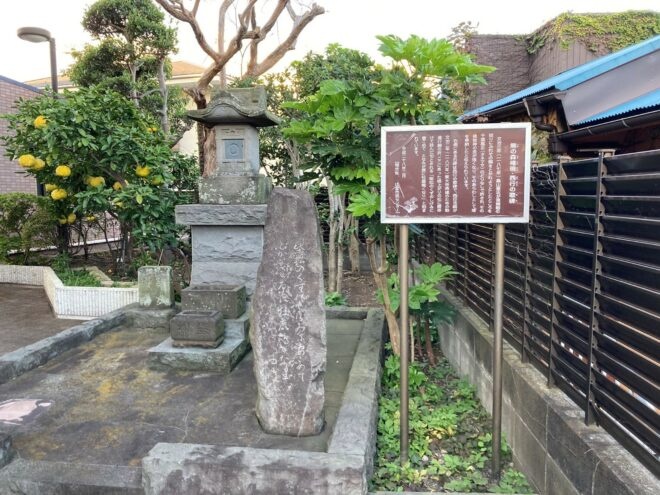 また、現在はマンションの一角にひっそりとある熊の森権現は、畠山重忠が塔を奉納下と伝えられています。塔の右側には、「柴松のくずのしげみに妻こめてとなみが原に牡鹿鳴くなり」という西行の歌詞が刻まれており、この句は、西行が1186(文治二年)、東大寺再建のための勧進行脚の際にここにあった根上がりの松に腰かけて詠んだものとされています。
