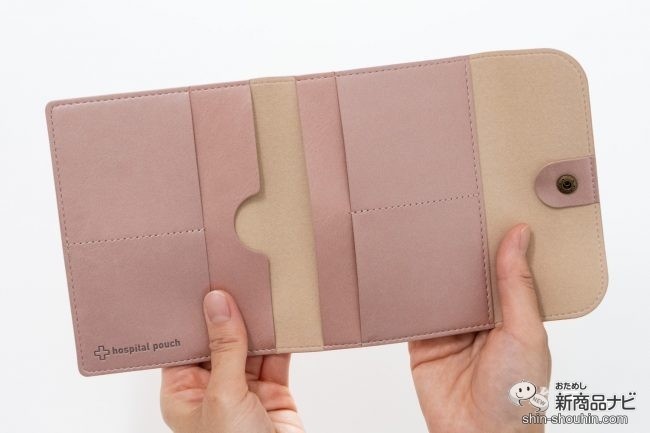 余裕のあるカードポケットは、ひとまわり大きな診察券もするり。駐車券や会計待ちの番号札なども、ここなら失くさないで済むだろう。