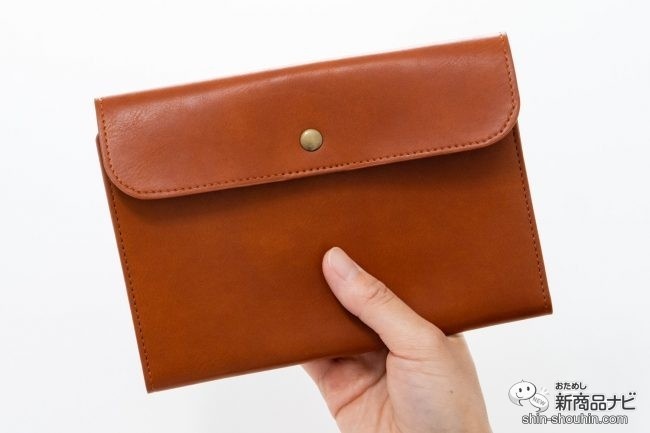 ファスナーよりずっと早くて楽文庫本を縦長にしたようなサイズ感。ブラウンカラーはより革っぽい。