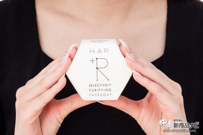 そんなサンギから今回ピックアップするのは、『ハップアール フェイスソープ』(100g・税込2,420円)。森林認証紙を使用した、六角形が印象的なパッケージ。デザインが二層でかわいいが、石けん自体も二層構造なのがポイントだ。大きな特長は、独自成分の「アパリン(※2)」が配合されていること。
