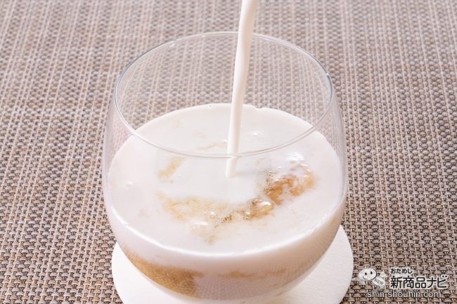 すぐに溶けたしっかり混ぜれば「きびオリゴバナナジュース」の完成! ミキサーなしでできる即席ジュースだ。