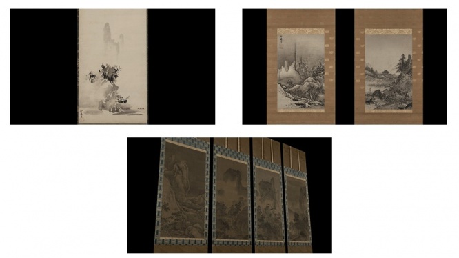 本VR作品では、国宝「秋冬山水図」と重要文化財「四季山水図」をVRやアニメーションとして再構成することで、掛け軸に描かれた山水画の中に入り込むような体験を可能にしています。また、国宝「破墨山水図」の筆運び順を解析し、雪舟による描画の全工程を映像再現しています。