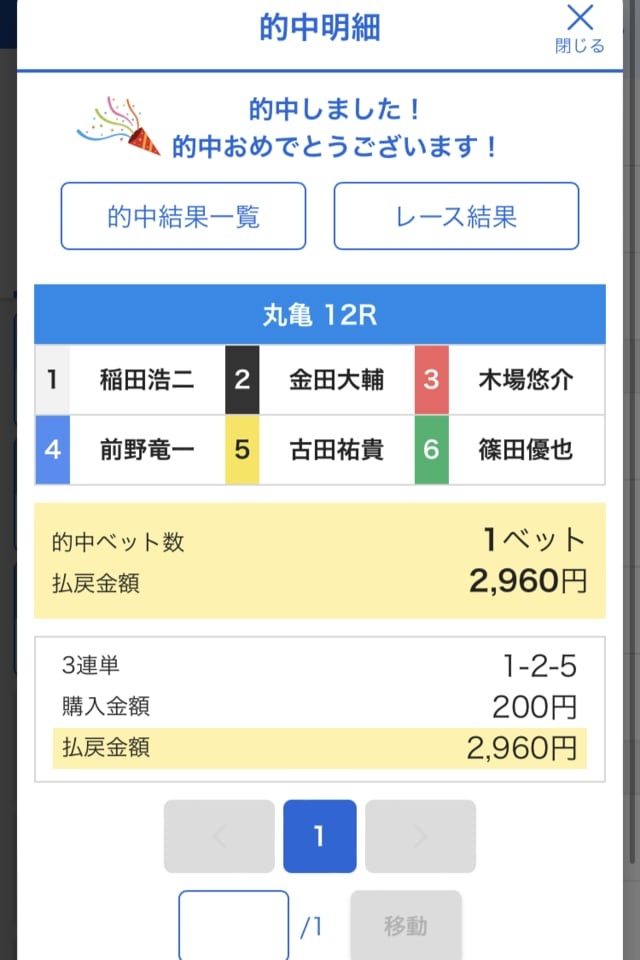 ……というわけで今節の収支は……マイナス3000円くらい? ちなみに優勝戦も123BOX で買って見事に外しましたからね……。稲田選手、これからも応援しています!(カワノアユミ)