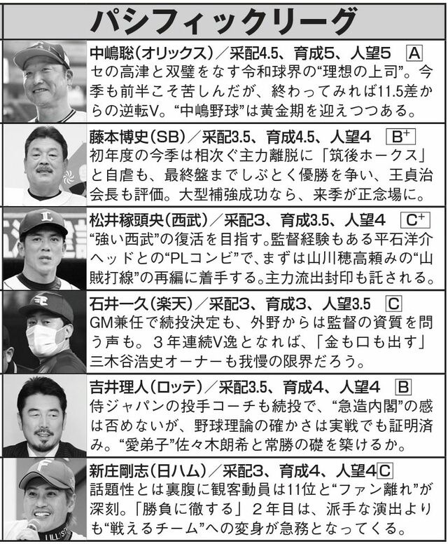 【画像】戦いはすでに始まっている!!「プロ野球12球団」監督(裏)査定